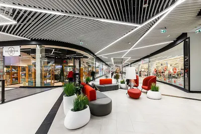 - Szeroki wybór sklepów odzieżowych i usługowych (H&M, Rossmann, Carrefour)